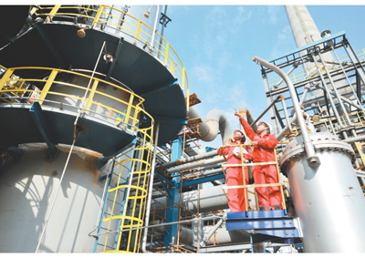 不斷追求綠色化,將排放濃度降至最低,企業(yè)這樣的環(huán)境行為理應(yīng)得到認(rèn)可和鼓勵(lì)。圖為中國(guó)石化西南油氣分公司元壩凈化廠工作人員在檢查排放治理設(shè)備。