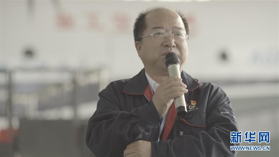 10月17日,AG600飛機總設(shè)計師黃領(lǐng)才介紹該機型特性(視頻截圖)。新華社記者 熊琦 攝