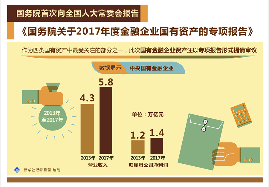 圖表:國(guó)務(wù)院首次向全國(guó)人大常委會(huì)報(bào)告《國(guó)務(wù)院關(guān)于2017年度金融企業(yè)國(guó)有資產(chǎn)的專項(xiàng)報(bào)告》 新華社記者 崔瑩 編制