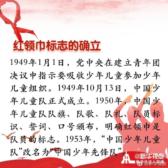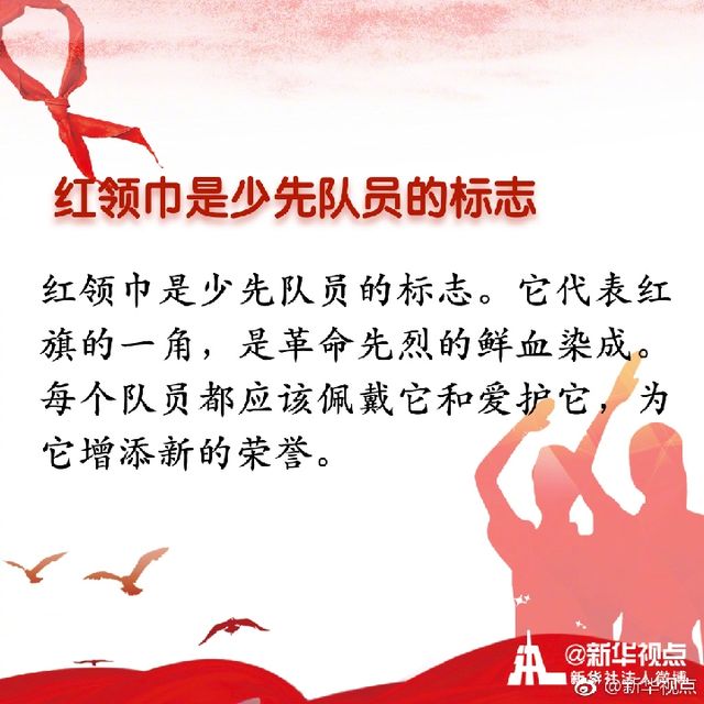 “我們是共產(chǎn)主義接班人,繼承革命先輩的光榮傳統(tǒng),愛祖國,愛人民,鮮艷的紅領(lǐng)巾飄揚在前胸。”紅領(lǐng)巾是紅旗的一角,是少年先鋒隊的象征與標(biāo)志。你是幾歲佩戴上的紅領(lǐng)巾?你對曾經(jīng)朝夕相伴的紅領(lǐng)巾了解多少?戳圖看詳解↓↓