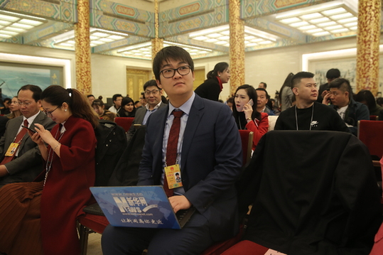 圖為2018年全國兩會(huì),王子暉在總理記者會(huì)現(xiàn)場采訪。