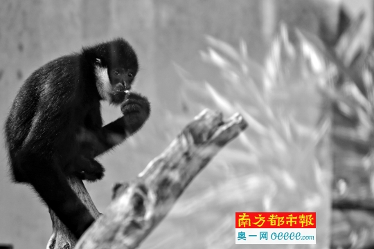 27日,在廣州動物園,一只北白頰長臂猿在進食。南都記者 黎湛均 攝