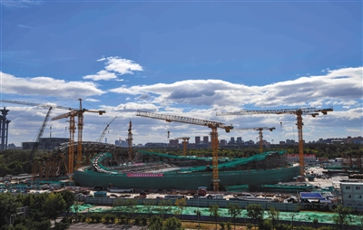 9月30日,北京冬奧會標(biāo)志性建筑國家速滑館混凝土主體結(jié)構(gòu)完成,“冰絲帶”已經(jīng)拔地而起,在北京奧林匹克公園露出了偉岸的身軀。圖/視覺中國