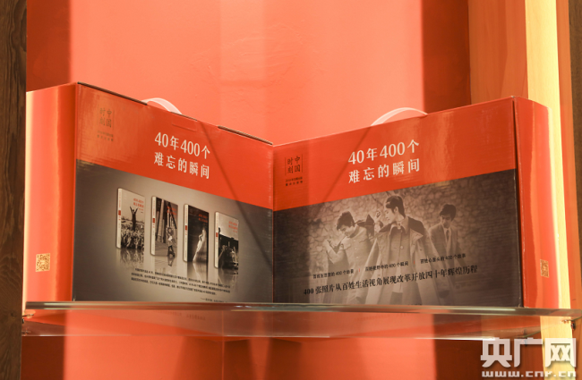 圖為展示書籍《40年400個難忘的瞬間》。(央廣網(wǎng)記者 荊宇琦 攝)