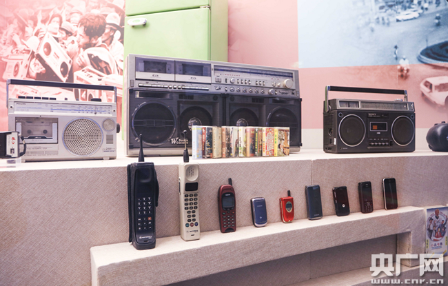 圖為館內(nèi)展示的收音機、磁帶及手機。(央廣網(wǎng)記者 荊宇琦 攝)