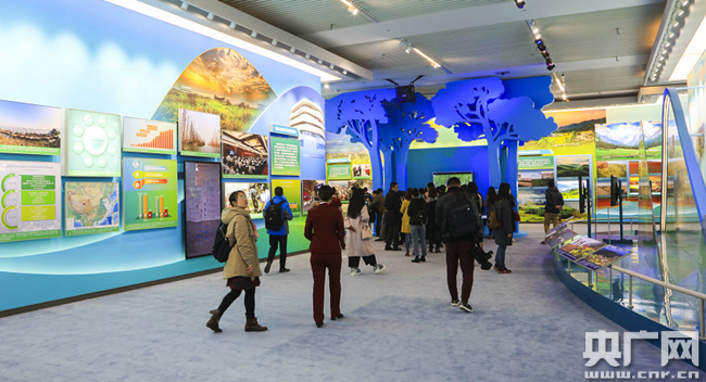 綠水青山就是金山銀山。40年來我國生態(tài)建設(shè)取得的成就,均在館內(nèi)得到展示。(央廣網(wǎng)記者 荊宇琦 攝)