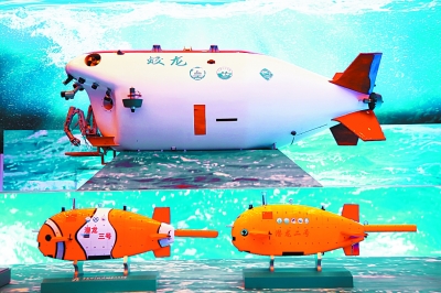 “可上九天攬月,可下五洋捉鱉”。一邊是航天技術(shù)展區(qū),一邊是航海技術(shù)展區(qū),完美對應(yīng)著詩句,一上一下,延展著人類對于世界的認(rèn)知和想象。天宮二號空間實驗室、嫦娥三號月球探測器以及蛟龍、海龍、潛龍“三龍兄弟”深海探測裝備模型,讓很多在場的孩子發(fā)出贊嘆之聲。