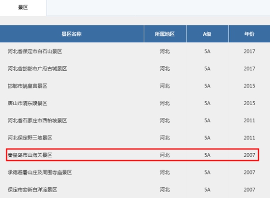 至此,山海關(guān)景區(qū)成為第一家被摘牌的5A級(jí)景區(qū)。