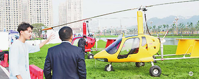 工作人員向觀眾介紹一款可搭載測(cè)繪儀器的自動(dòng)旋翼機(jī)。新華社發(fā)