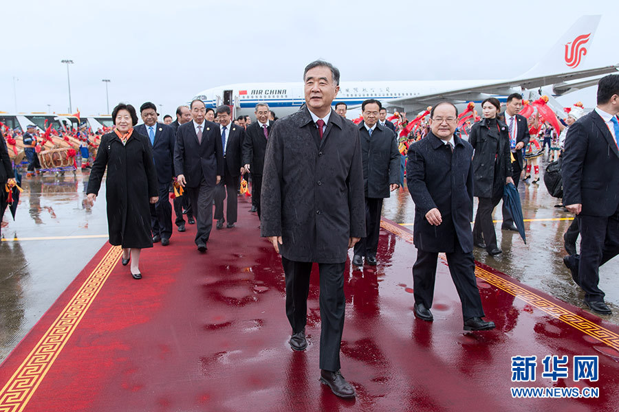 上午11時(shí)30分許,中央代表團(tuán)乘坐的包機(jī)徐徐降落在停機(jī)坪上,等候在這里的500多人的歡迎隊(duì)伍爆發(fā)出熱烈掌聲和歡呼聲。汪洋走出飛機(jī)艙門,向歡迎群眾揮手致意。