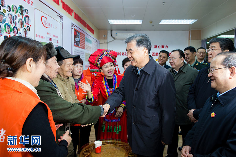 隨后,汪洋等前往鳳嶺北社區(qū)考察。在便民服務(wù)大廳、互助養(yǎng)老志愿服務(wù)站、“民族之家”活動室,汪洋與工作人員、志愿者和社區(qū)居民交流,了解社區(qū)加強基層黨建工作、開展便民服務(wù)情況。他指出,社區(qū)是黨和政府聯(lián)系、服務(wù)居民群眾的“最后一公里”,要健全社區(qū)管理和服務(wù)體制,整合各種資源,增強社區(qū)公共服務(wù)能力,讓大家有更多的獲得感、幸福感。