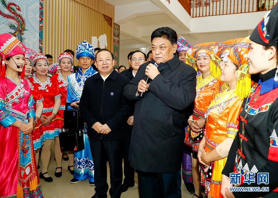12月12日,全國人大常委會(huì)副委員長、中央代表團(tuán)副團(tuán)長白瑪赤林率中央代表團(tuán)四分團(tuán),帶著以習(xí)近平同志為核心的黨中央的親切關(guān)懷和全國各族人民的美好祝福,在來賓市看望慰問各族各界干部群眾。這是白瑪赤林在來賓市興賓區(qū)鳳凰鎮(zhèn)八一文化中心看望在這里活動(dòng)的各族群眾。 新華社記者 陳建力 攝