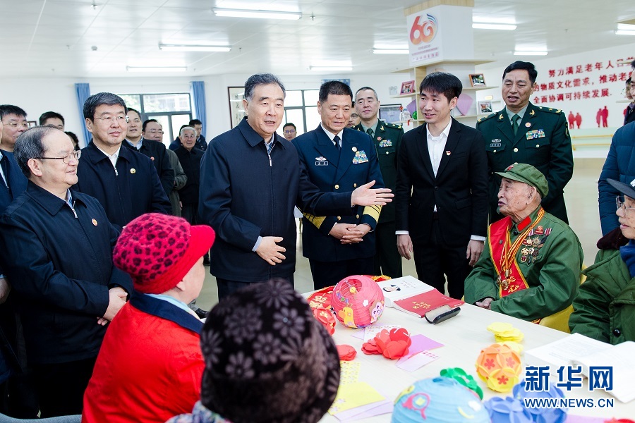 12月13日,帶著以習(xí)近平同志為核心的黨中央的親切關(guān)懷和全國各族人民的美好祝福,中共中央政治局常委、全國政協(xié)主席、中央代表團(tuán)團(tuán)長汪洋率中央代表團(tuán)一分團(tuán),在北海市看望慰問各族各界干部群眾,和大家共同慶祝廣西壯族自治區(qū)成立60周年。這是汪洋來到北海市社會福利院,看望慰問在這里的老人?!⌒氯A社記者 劉彬 攝