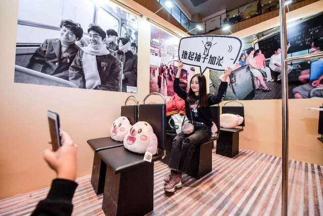 年輕人們在公交車?yán)锔锌^去年代