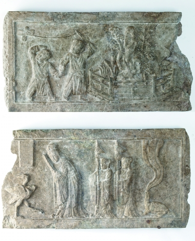 2014年起,考古隊對位于遼寧省北鎮(zhèn)市的新立遼代建筑遺址、琉璃寺遺址進行了考古發(fā)掘。在新立遺址,發(fā)現(xiàn)了一組較完整的遼代四合院式建筑基址??脊蓬I(lǐng)隊萬雄飛介紹,出土遺物的瓦件絕大多數(shù)為綠色琉璃,“證明該四合院建筑為一座滿鋪綠琉璃瓦的高等級建筑。正殿周圍還出土了大量鋪地花斑石殘塊,這種高級石材一般僅用于皇家宮殿和陵寢建筑?!闭钪线€出土了一些玉冊殘塊,有契丹小字和漢字兩套。遺址東側(cè)的坡地上出土了一件具有皇家氣派的大型石螭首。通過與遼慶陵的比較,并結(jié)合史料綜合分析,專家認為這里就是遼代乾陵的陵前祭殿。