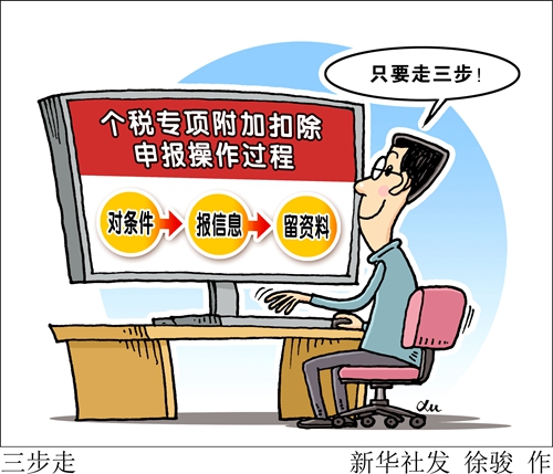 新華社北京12月24日電(郁瓊源、王錦萱)“對(duì)條件、報(bào)信息、留資料,納稅人要享受專項(xiàng)附加扣除,只需做到這三步?!贬槍?duì)納稅人如何才能享受到2019年1月1日起實(shí)施的個(gè)稅專項(xiàng)附加扣除,國(guó)家稅務(wù)總局總審計(jì)師劉麗堅(jiān)24日在國(guó)務(wù)院新聞辦舉辦的國(guó)務(wù)院政策例行吹風(fēng)會(huì)上回答了記者的提問。