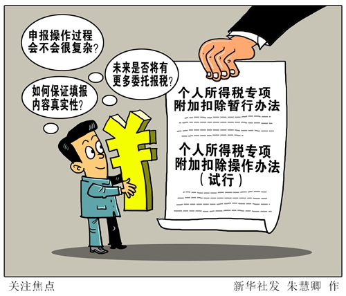 日前,《個(gè)人所得稅專(zhuān)項(xiàng)附加扣除暫行辦法》和《個(gè)人所得稅專(zhuān)項(xiàng)附加扣除操作辦法(試行)》正式公布。面對(duì)這項(xiàng)即將實(shí)施的惠民政策,很多人關(guān)心:申報(bào)操作過(guò)程是否會(huì)很復(fù)雜?如何保證信息真實(shí)性?委托報(bào)稅可否實(shí)現(xiàn)?“新華視點(diǎn)”記者采訪了權(quán)威人士、專(zhuān)家以及多地基層稅務(wù)人員,回應(yīng)民生關(guān)切。