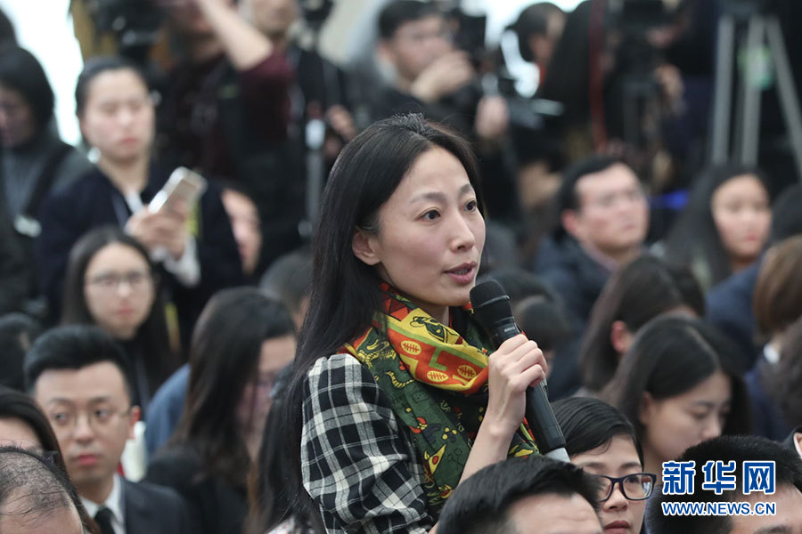 全國政協(xié)十三屆一次會(huì)議新聞發(fā)布會(huì)3月2日16:30在人民大會(huì)堂一層新聞發(fā)布廳召開,大會(huì)新聞發(fā)言人王國慶向中外媒體介紹本次大會(huì)有關(guān)情況并回答記者提問。圖為香港文匯報(bào)、大公報(bào)記者提問。新華社記者 邢廣利 攝