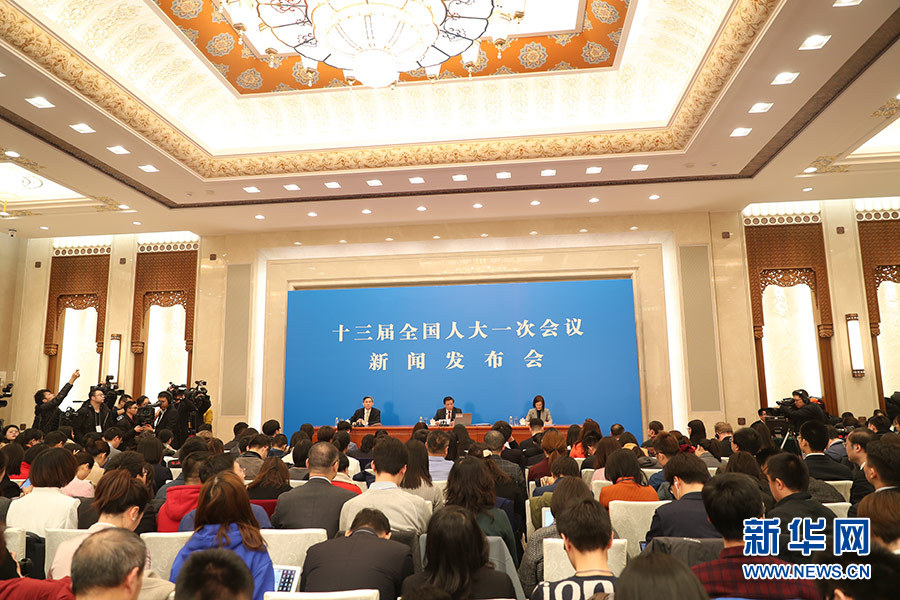 3月4日,十三屆全國人大一次會議在人民大會堂新聞發(fā)布廳舉行新聞發(fā)布會,由大會發(fā)言人張業(yè)遂就大會議程和人大工作相關的問題回答中外記者的提問。圖為新聞發(fā)布會現場。新華網/中國政府網 陳杰 攝