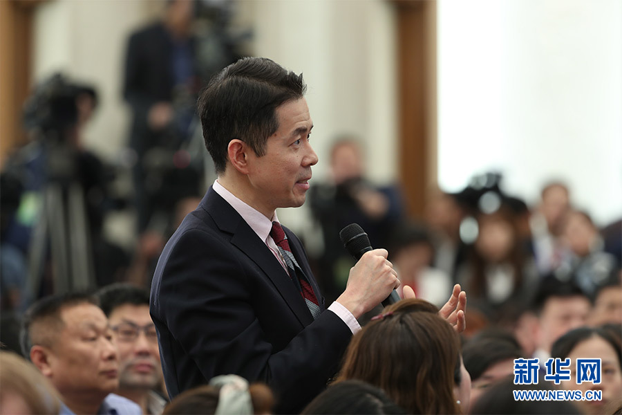 3月4日,十三屆全國人大一次會議在人民大會堂新聞發(fā)布廳舉行新聞發(fā)布會,由大會發(fā)言人張業(yè)遂就大會議程和人大工作相關的問題回答中外記者的提問。圖為CNN記者提問。新華網/中國政府網 翟子赫 攝