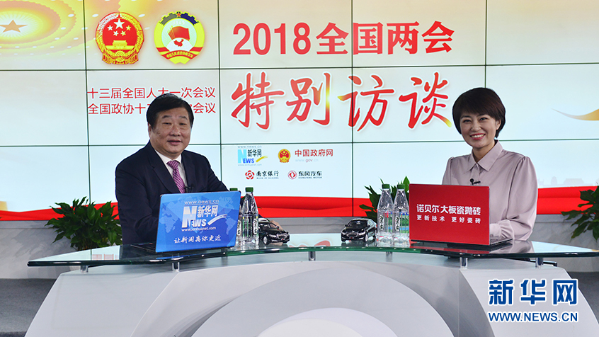 3月5日,全國人大代表、山東重工集團(tuán)董事長、濰柴集團(tuán)董事長譚旭光(左)做客新華網(wǎng)2018全國兩會特別訪談。新華網(wǎng) 李相博攝