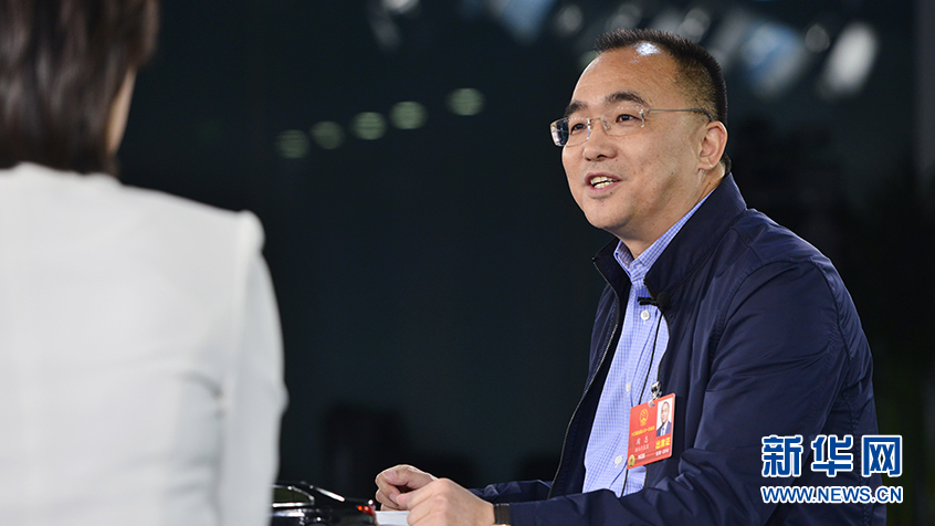 第十三屆全國人大代表、卓爾控股有限公司董事長閻志做客新華網(wǎng)2018全國兩會特別訪談。新華網(wǎng) 李相博攝