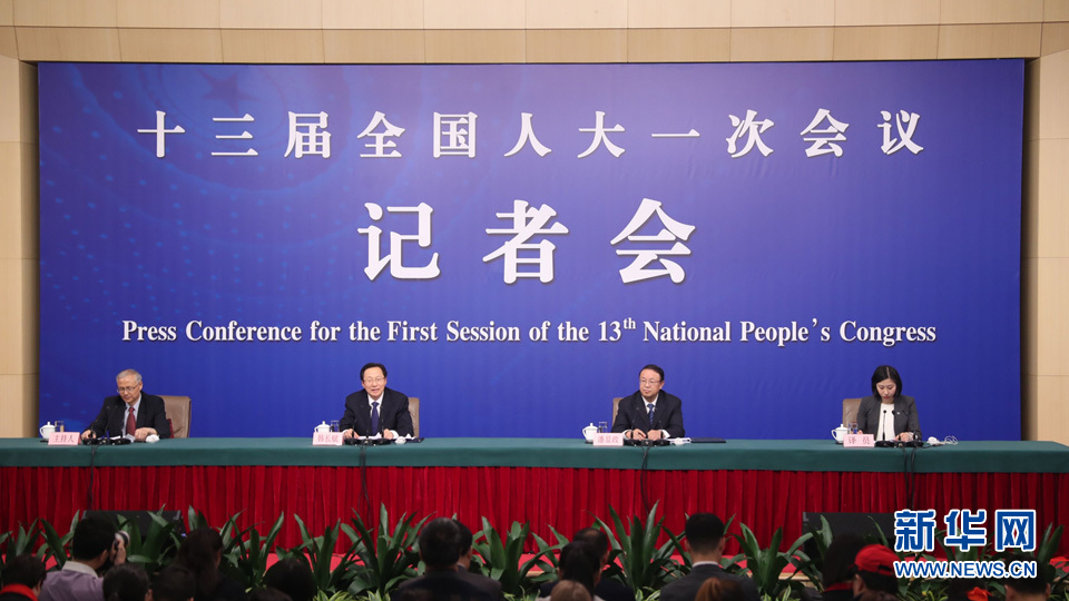 十三屆全國人大一次會議新聞中心于3月7日在梅地亞中心多功能廳舉行記者會,邀請農(nóng)業(yè)部部長韓長賦,農(nóng)業(yè)部新聞發(fā)言人、辦公廳主任潘顯政就“實(shí)施鄉(xiāng)村振興戰(zhàn)略 推動農(nóng)業(yè)轉(zhuǎn)型升級”的相關(guān)問題回答中外記者的提問。圖為記者會現(xiàn)場。新華網(wǎng)/中國政府網(wǎng) 陳杰 攝