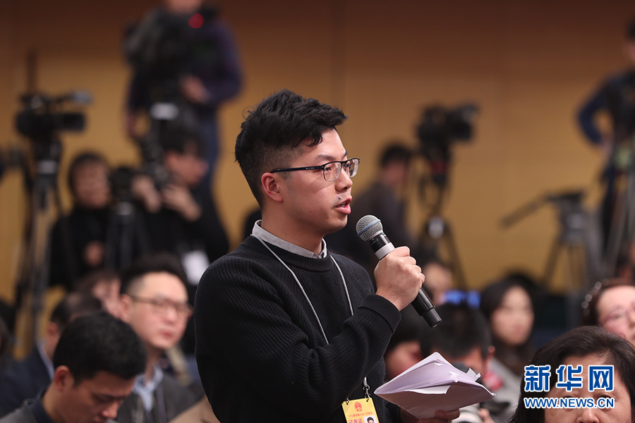 十三屆全國人大一次會議新聞中心于3月7日在梅地亞中心多功能廳舉行記者會,邀請國務院扶貧辦主任劉永富就“打好精準脫貧攻堅戰(zhàn)”的相關(guān)問題回答中外記者的提問。圖為南方都市報記者提問。新華網(wǎng)/中國政府網(wǎng) 曲植 攝