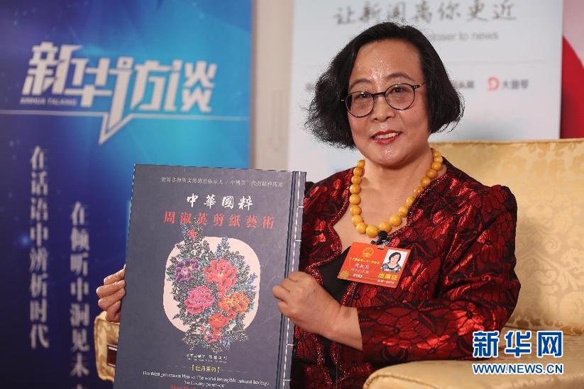 全國人大代表、河北蔚縣周淑英剪紙藝術(shù)館館長周淑英。新華網(wǎng) 王翰林 攝