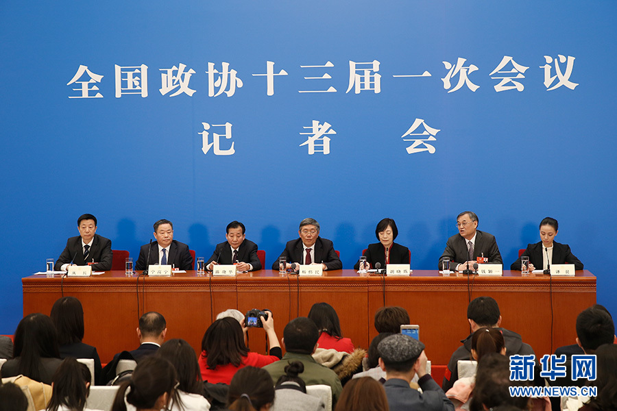 全國政協(xié)十三屆一次會議3月8日15:00在人民大會堂新聞發(fā)布廳舉行第二場記者會,邀請中央財經(jīng)領(lǐng)導小組辦公室副主任楊偉民,中國進出口銀行董事長、黨委書記胡曉煉,農(nóng)業(yè)部原副部長陳曉華,全國工商聯(lián)副主席、清華大學經(jīng)濟管理學院院長錢穎一,中國中化集團有限公司黨組書記、董事長寧高寧就推動經(jīng)濟高質(zhì)量發(fā)展回答記者提問。圖為記者會現(xiàn)場。新華網(wǎng)/中國政府網(wǎng) 翟子赫 攝?