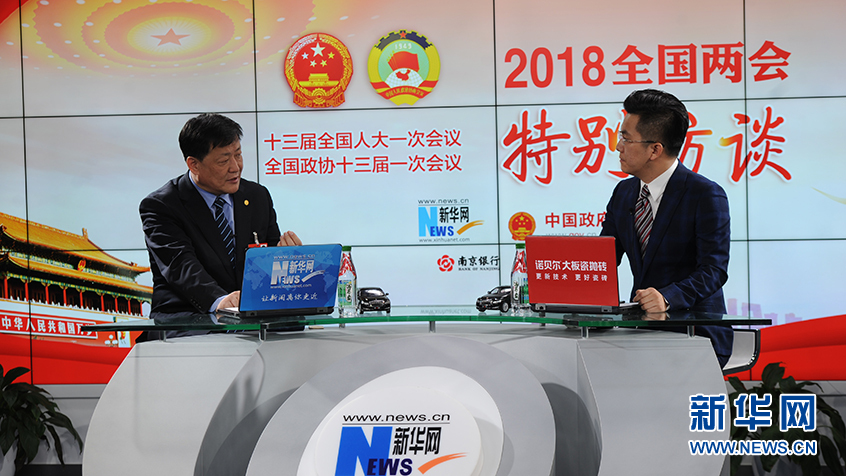 9日,全國(guó)政協(xié)委員、遼寧奧克化學(xué)股份有限公司董事長(zhǎng)朱建民做客新華網(wǎng)2018全國(guó)兩會(huì)特別訪談,與網(wǎng)友在線交流。新華網(wǎng) 郭小天攝
