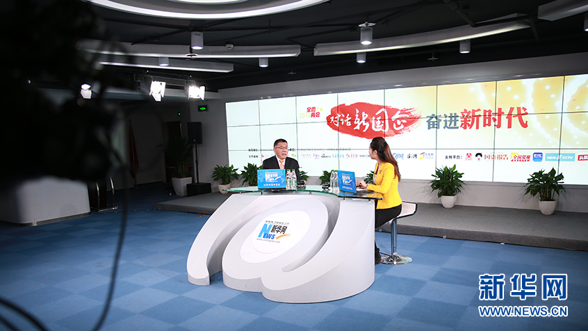 全國人大代表、廣西柳工集團有限公司董事長曾光安(左)做客國資委和新華網共同推出的“對話新國企·奮進新時代”系列訪談。新華網 楊锘攝