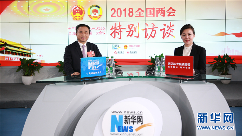 3月9日,全國人大代表,全國工商聯(lián)執(zhí)委、浙江省工商聯(lián)副主席、天能集團董事長張?zhí)烊危ㄗ螅┳隹托氯A網(wǎng)2018全國兩會特別訪談。新華網(wǎng) 楊锘攝