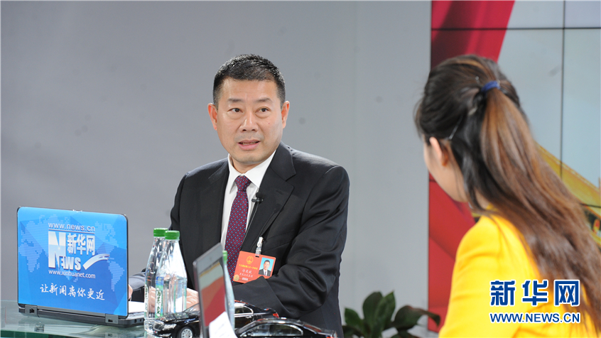 3月9日,全國人大代表、飛鶴乳業(yè)董事長冷友斌做客新華網(wǎng)2018全國兩會特別訪談。新華網(wǎng) 郭小天攝