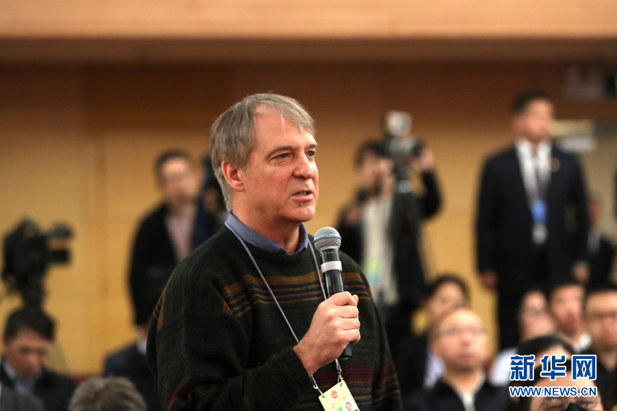 ??? 十三屆全國(guó)人大一次會(huì)議新聞中心3月10日15時(shí)在梅地亞中心多功能廳舉行記者會(huì),邀請(qǐng)國(guó)務(wù)院國(guó)資委主任肖亞慶,副秘書(shū)長(zhǎng)、新聞發(fā)言人彭華崗就“國(guó)有企業(yè)改革發(fā)展”相關(guān)問(wèn)題回答中外記者提問(wèn)。圖為彭博社記者提問(wèn)。新華網(wǎng)/中國(guó)政府網(wǎng)?曲植 攝