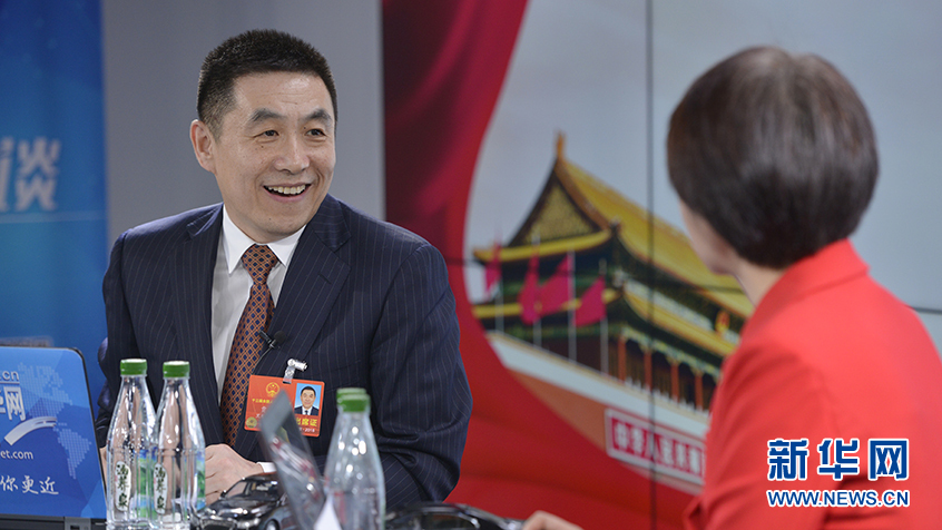 全國人大代表,黑龍江省七臺河市市長賈君做客新華網(wǎng)2018全國兩會特別訪談。新華網(wǎng) 李相博攝