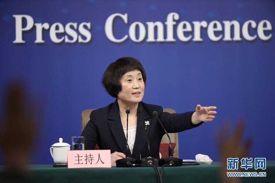 十三屆全國(guó)人大一次會(huì)議新聞中心3月10日15時(shí)在梅地亞中心多功能廳舉行記者會(huì),邀請(qǐng)國(guó)務(wù)院國(guó)資委主任肖亞慶,副秘書長(zhǎng)、新聞發(fā)言人彭華崗就“國(guó)有企業(yè)改革發(fā)展”相關(guān)問(wèn)題回答中外記者提問(wèn)。圖為記者會(huì)主持人。新華網(wǎng)/中國(guó)政府網(wǎng) 翟子赫 攝