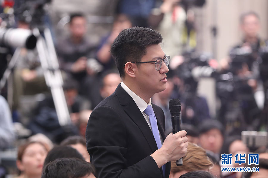3月11日,十三屆全國人大一次會議新聞中心在人民大會堂一樓新聞發(fā)布廳舉行記者會,邀請十三屆全國人大一次會議秘書處法案組組長、全國人大常委會法工委主任沈春耀,法案組副組長、全國人大常委會法工委副主任鄭淑娜就“憲法修正案”相關問題回答中外記者提問。圖為中央電視臺記者提問。新華網/中國政府網 翟子赫 攝