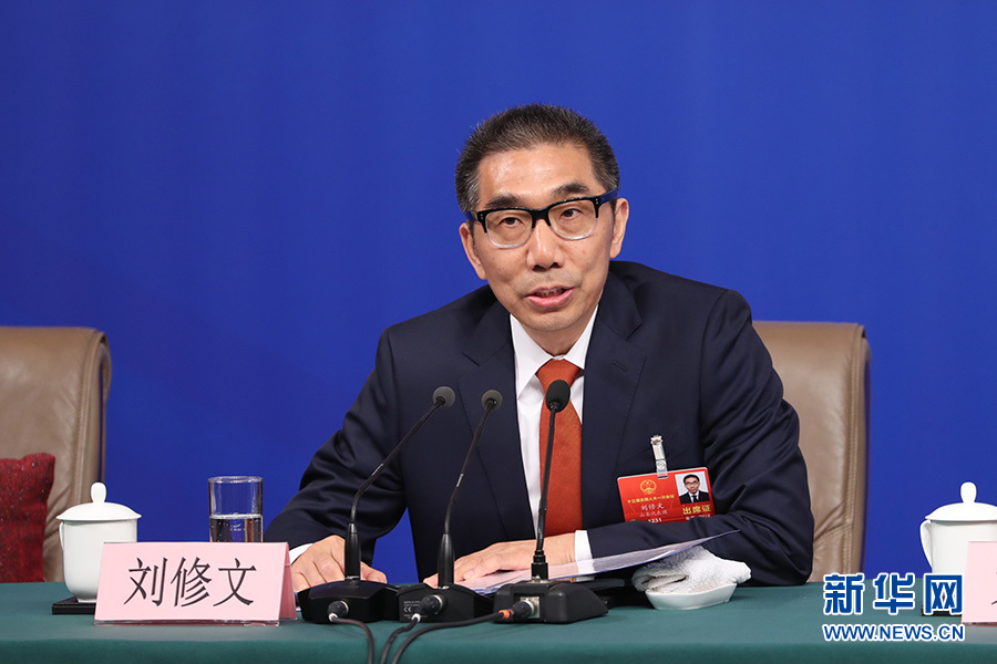 十三屆全國人大一次會議新聞中心于3月12日15時在梅地亞中心多功能廳舉行記者會,邀請十二屆全國人大財經委副主任委員尹中卿、教科文衛(wèi)委副主任委員吳恒、環(huán)資委副主任委員袁駟、內司委委員鄭功成,全國人大常委會預算工委副主任劉修文、常委會辦公廳秘書局巡視員傅文杰就“人大監(jiān)督工作”相關問題回答中外記者提問。圖為全國人大常委會預算工委副主任劉修文回答記者提問。新華網/中國政府網 陳杰 攝