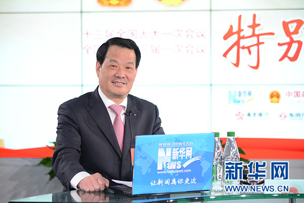 全國人大代表,中建材蚌埠玻璃工業(yè)設(shè)計研究院院長彭壽做客新華網(wǎng)2018全國兩會特別訪談 新華網(wǎng)楊濛 攝