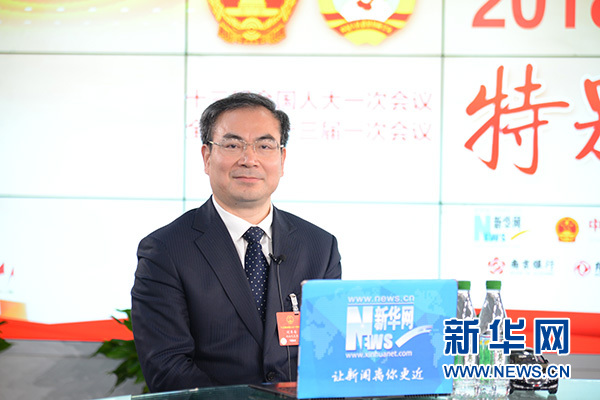 全國人大代表、張家界市市長劉革安做客新華網(wǎng)2018全國兩會特別訪談。新華網(wǎng)楊濛 攝