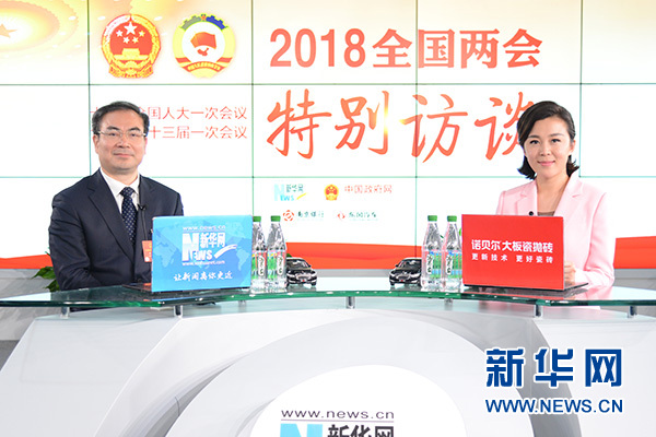 全國人大代表、張家界市市長劉革安做客新華網(wǎng)2018全國兩會特別訪談。新華網(wǎng)楊濛 攝