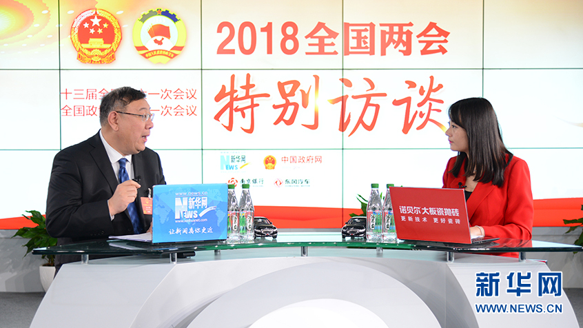3月12日,全國(guó)人大代表、國(guó)家電網(wǎng)湖南省電力有限公司董事長(zhǎng)孟慶強(qiáng)(左)做客新華網(wǎng)2018全國(guó)兩會(huì)特別訪談。新華網(wǎng) 楊濛攝