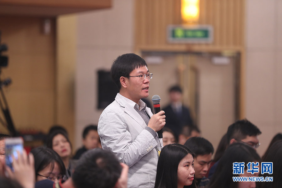 3月12日,十三屆全國人大一次會議新聞中心在梅地亞中心多功能廳舉行記者會,邀請十二屆全國人大內(nèi)司委副主任委員王勝明、財經(jīng)委副主任委員烏日圖、教科文衛(wèi)委副主任委員吳恒、環(huán)資委委員呂彩霞,全國人大常委會法工委副主任王超英、副主任許安標就“人大立法工作”相關(guān)問題回答中外記者提問。圖為瞭望周刊記者提問。新華網(wǎng)/中國政府網(wǎng) 翟子赫 攝