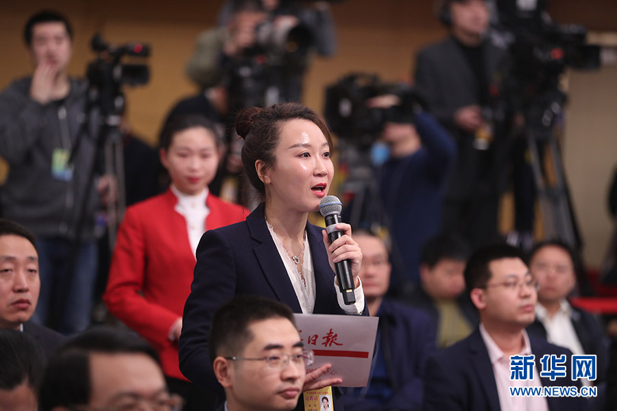 3月12日,十三屆全國人大一次會議新聞中心在梅地亞中心多功能廳舉行記者會,邀請十二屆全國人大內(nèi)司委副主任委員王勝明、財經(jīng)委副主任委員烏日圖、教科文衛(wèi)委副主任委員吳恒、環(huán)資委委員呂彩霞,全國人大常委會法工委副主任王超英、副主任許安標(biāo)就“人大立法工作”相關(guān)問題回答中外記者提問。圖為檢察日報記者提問。新華網(wǎng)/中國政府網(wǎng) 翟子赫 攝
