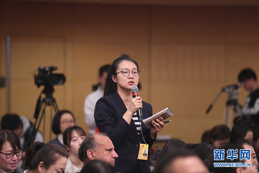 3月12日,十三屆全國人大一次會議新聞中心在梅地亞中心多功能廳舉行記者會,邀請十二屆全國人大內(nèi)司委副主任委員王勝明、財經(jīng)委副主任委員烏日圖、教科文衛(wèi)委副主任委員吳恒、環(huán)資委委員呂彩霞,全國人大常委會法工委副主任王超英、副主任許安標(biāo)就“人大立法工作”相關(guān)問題回答中外記者提問。圖為中國日報記者提問。新華網(wǎng)/中國政府網(wǎng) 翟子赫 攝