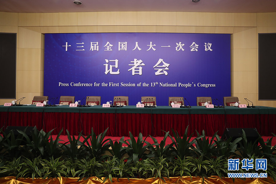 3月12日,十三屆全國人大一次會議新聞中心在梅地亞中心多功能廳舉行記者會,邀請十二屆全國人大財經(jīng)委副主任委員尹中卿、教科文衛(wèi)委副主任委員吳恒、環(huán)資委副主任委員袁駟、內(nèi)司委委員鄭功成,全國人大常委會預(yù)算工委副主任劉修文、常委會辦公廳秘書局巡視員傅文杰就“人大監(jiān)督工作”相關(guān)問題回答中外記者提問。圖為記者會開始前。新華網(wǎng)/中國政府網(wǎng)?陳杰 攝