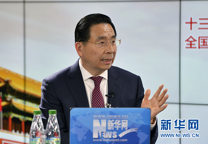圖為全國人大代表,中國移動浙江公司黨委書記、董事長、總經理鄭杰做客新華網2018全國兩會特別訪談。新華網 李相博攝