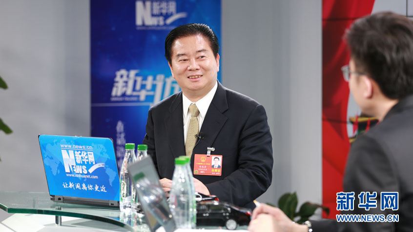 圖為全國人大代表、禹洲集團董事局主席林龍安做客新華網(wǎng)2018全國兩會特別訪談。新華網(wǎng) 楊锘攝