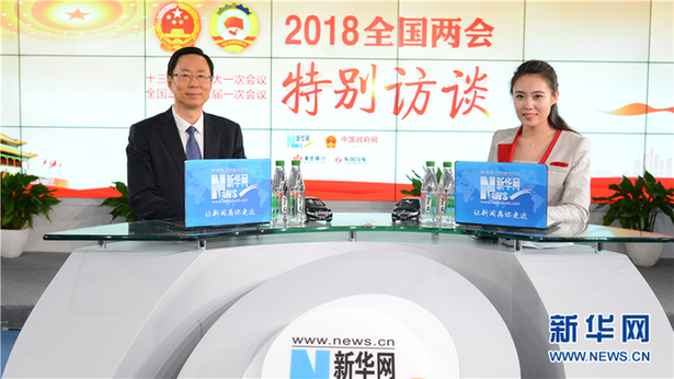 3月14日,全國人大代表、南京市市長藍紹敏(左)做客新華網(wǎng)2018全國兩會特別訪談。新華網(wǎng) 楊濛攝